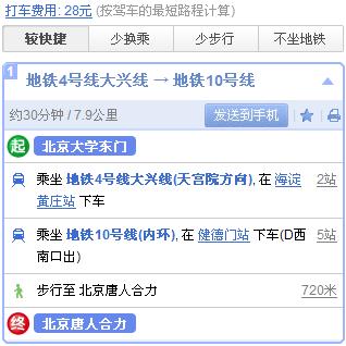 百度地图标注:起点(输入)——到——终点(北京唐人合力)-汽车导航软件也能