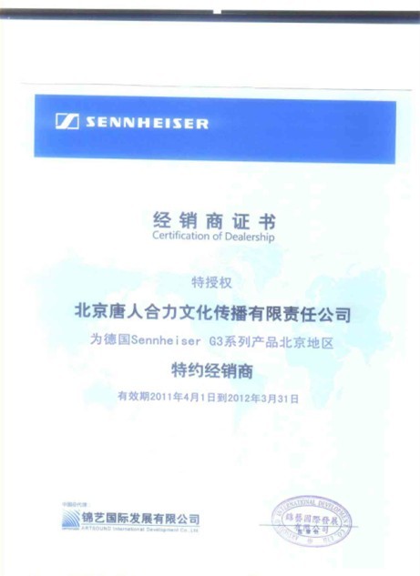 Sennheiser(森海塞尔)话筒授权书(北京地区代理)