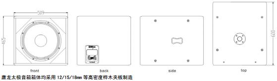 单元组成:低频:1×15 英寸纸盆,4 英寸音圈