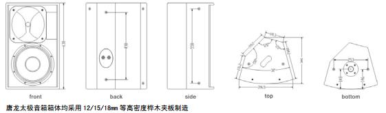 单元组成:低频:1×12 英寸纸盆,2.5 英寸音圈