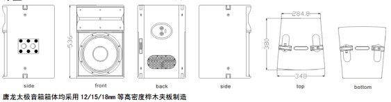 单元组成:低频:1×12 英寸纸盆,2.5 英寸音圈